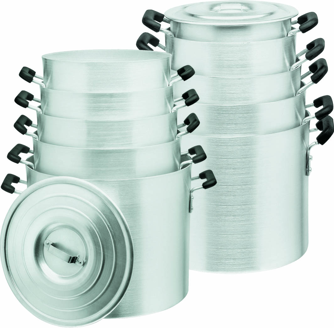 Caldeirão n°16, Caçarola n°18, Frigideira n°18, Caçarola n°16 e Canecão n°14